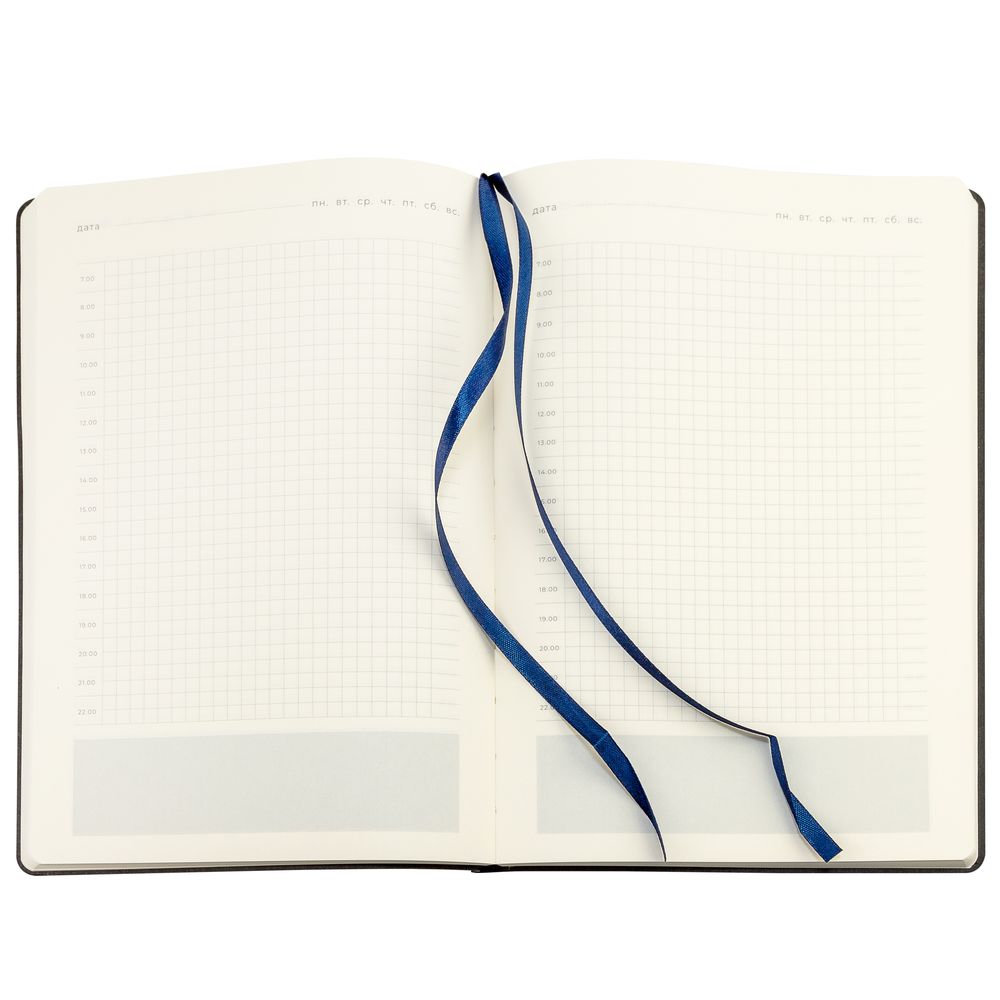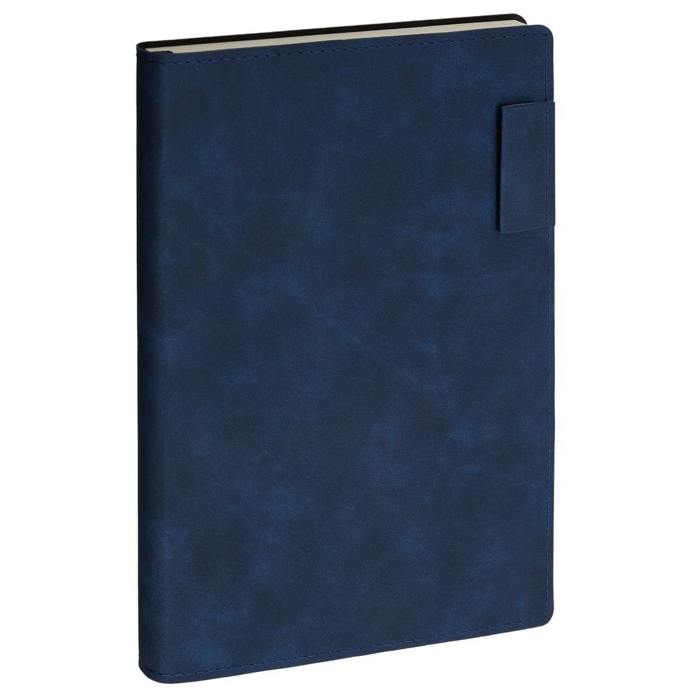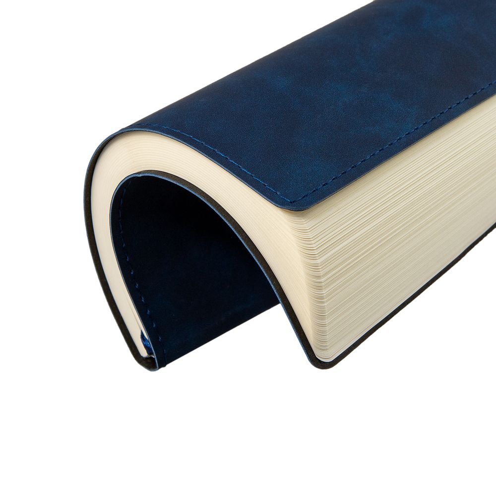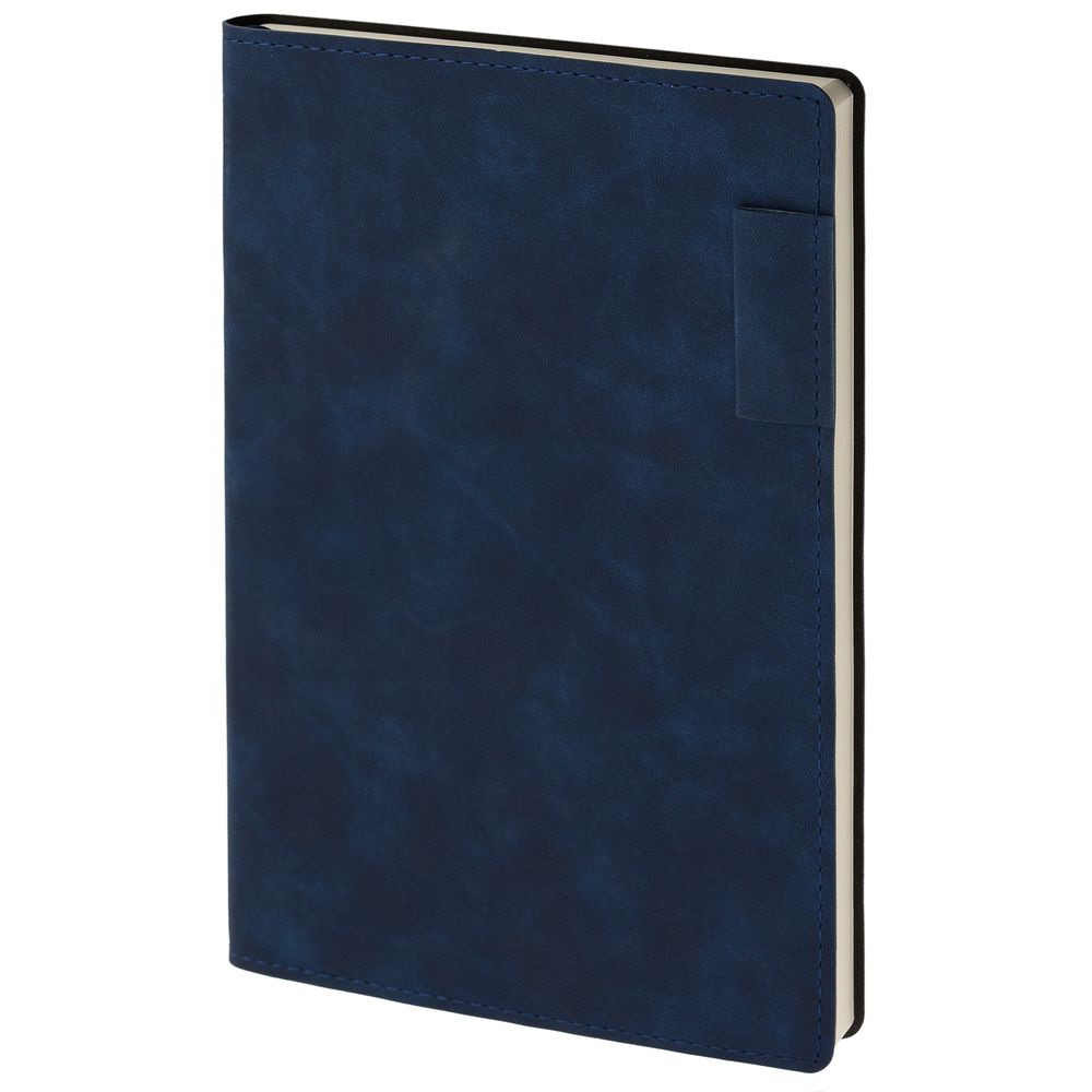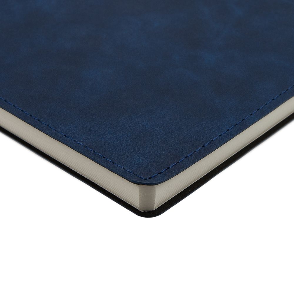 Ежедневник 17х24 см, с гибкой обложкой, выполнен из материала Nubuck Touch, темно-синий ХХ, дополнен петлей-лейблом для ручки и двойным ляссе в цвет материала.