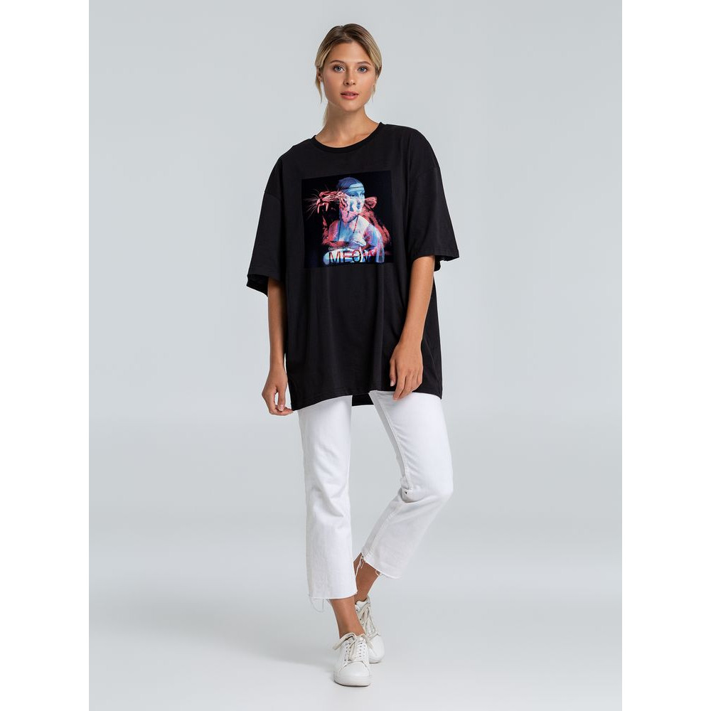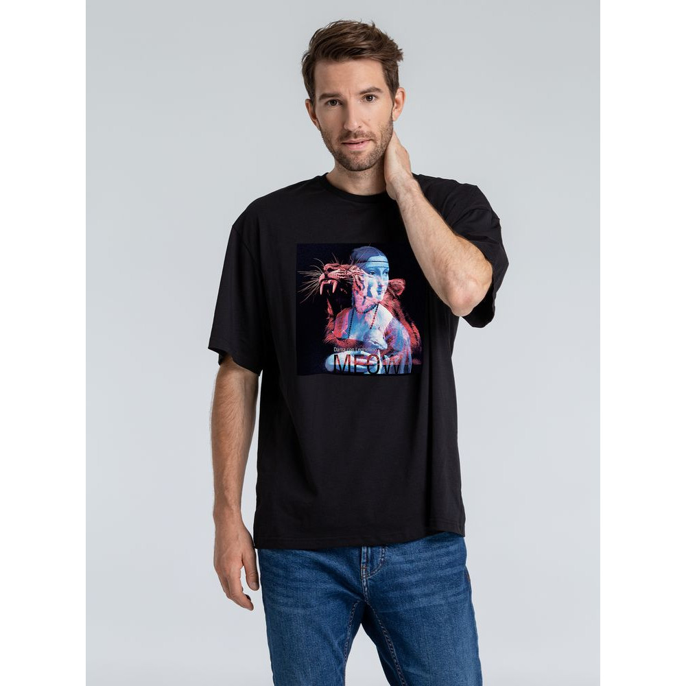 Футболка оверсайз «Дама с горностаем», черная