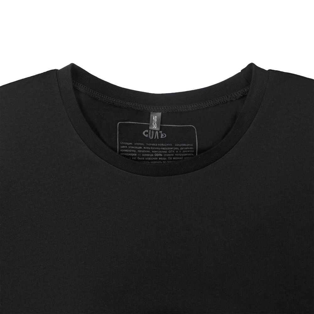 Принт с информацией о бренде и инструкцией по уходу за изделием на изнаночной стороне футболки.