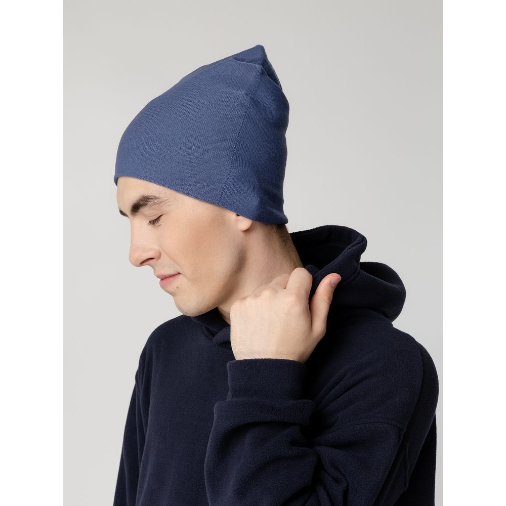 Двухслойная шапка-бини тонкой вязки, которую можно носить как с подворотом, так и без.