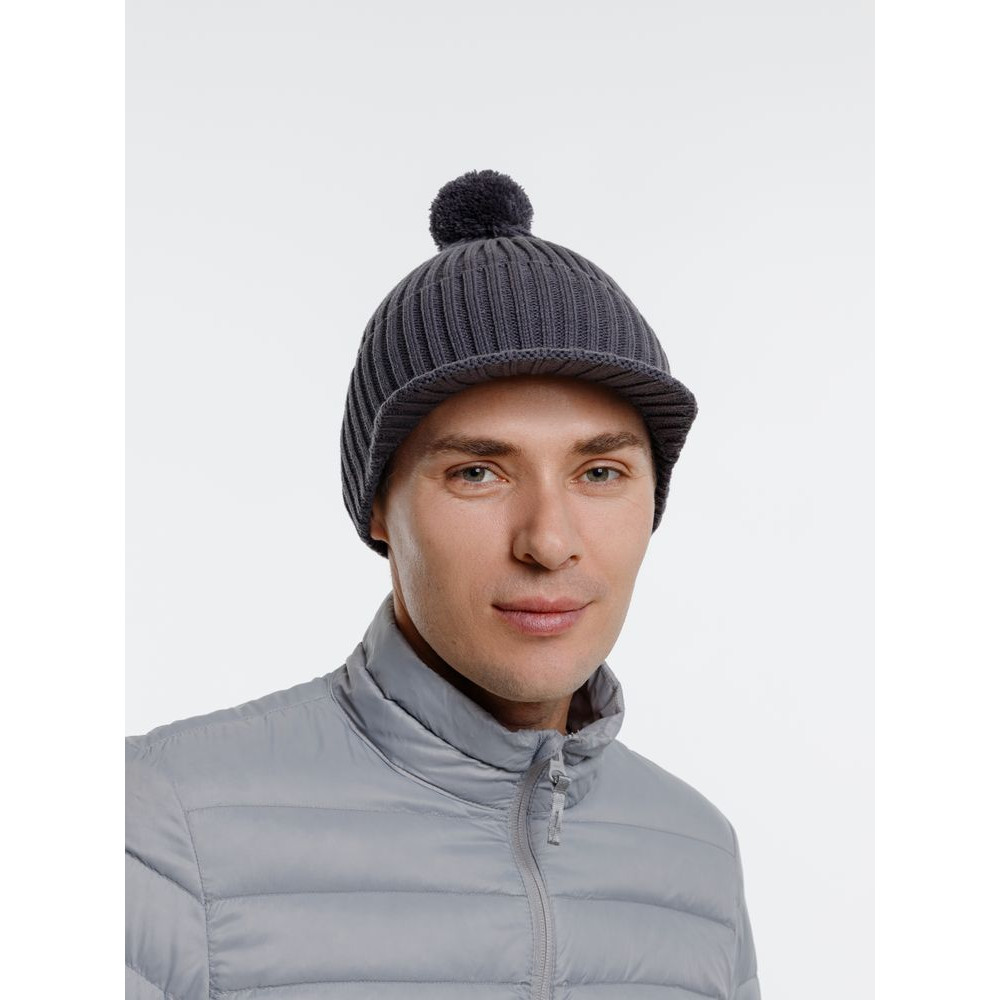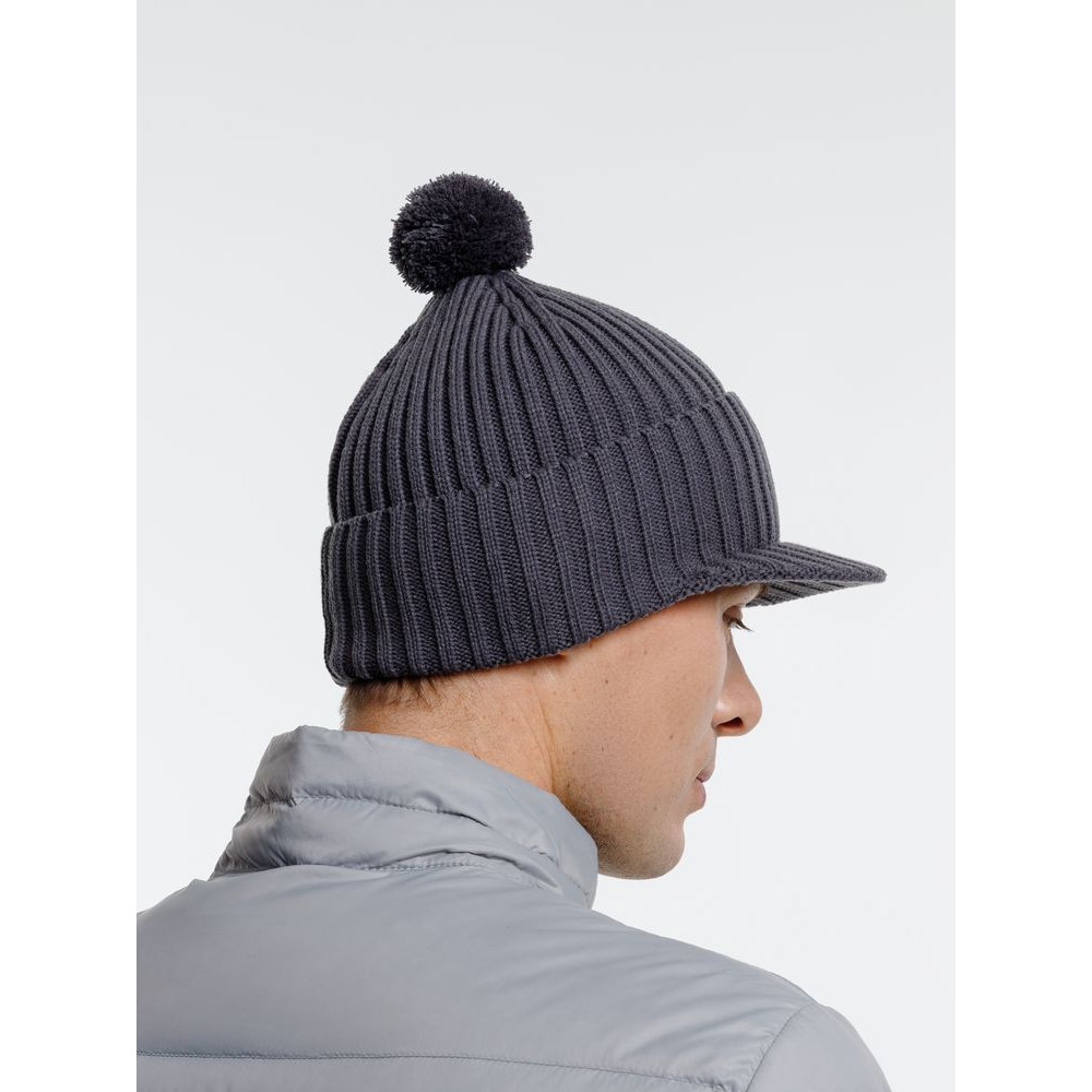 Вязаная шапка с козырьком Peaky, серая (антрацит)