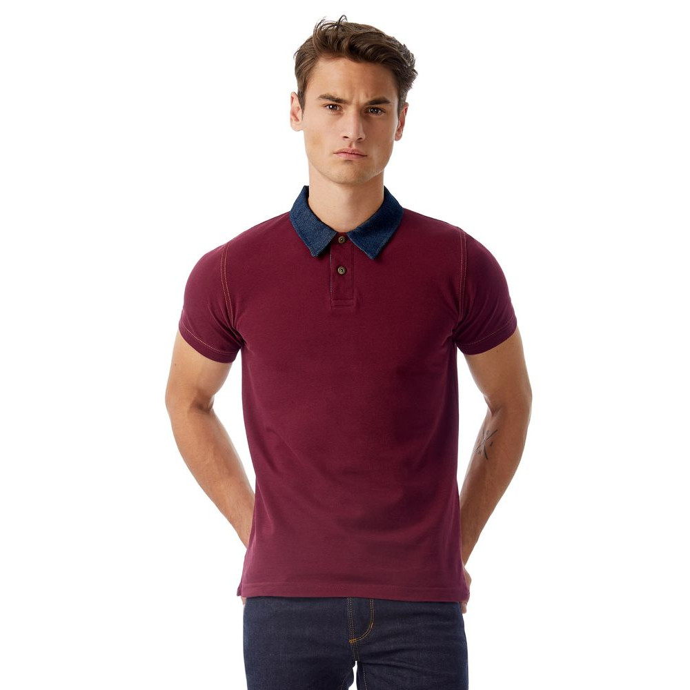 Рубашка поло с джинсовым воротником и контрастной отстрочкой.