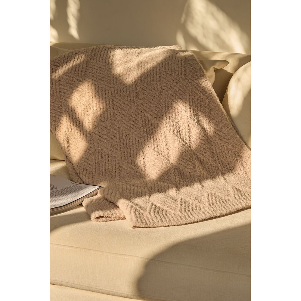 Изделие завораживает с первого взгляда: рельефный узор дарит пледу выразительность и премиальный вид. Плотная, увесистая структура материала мягко обволакивает и приятной тяжестью ощущается на теле.