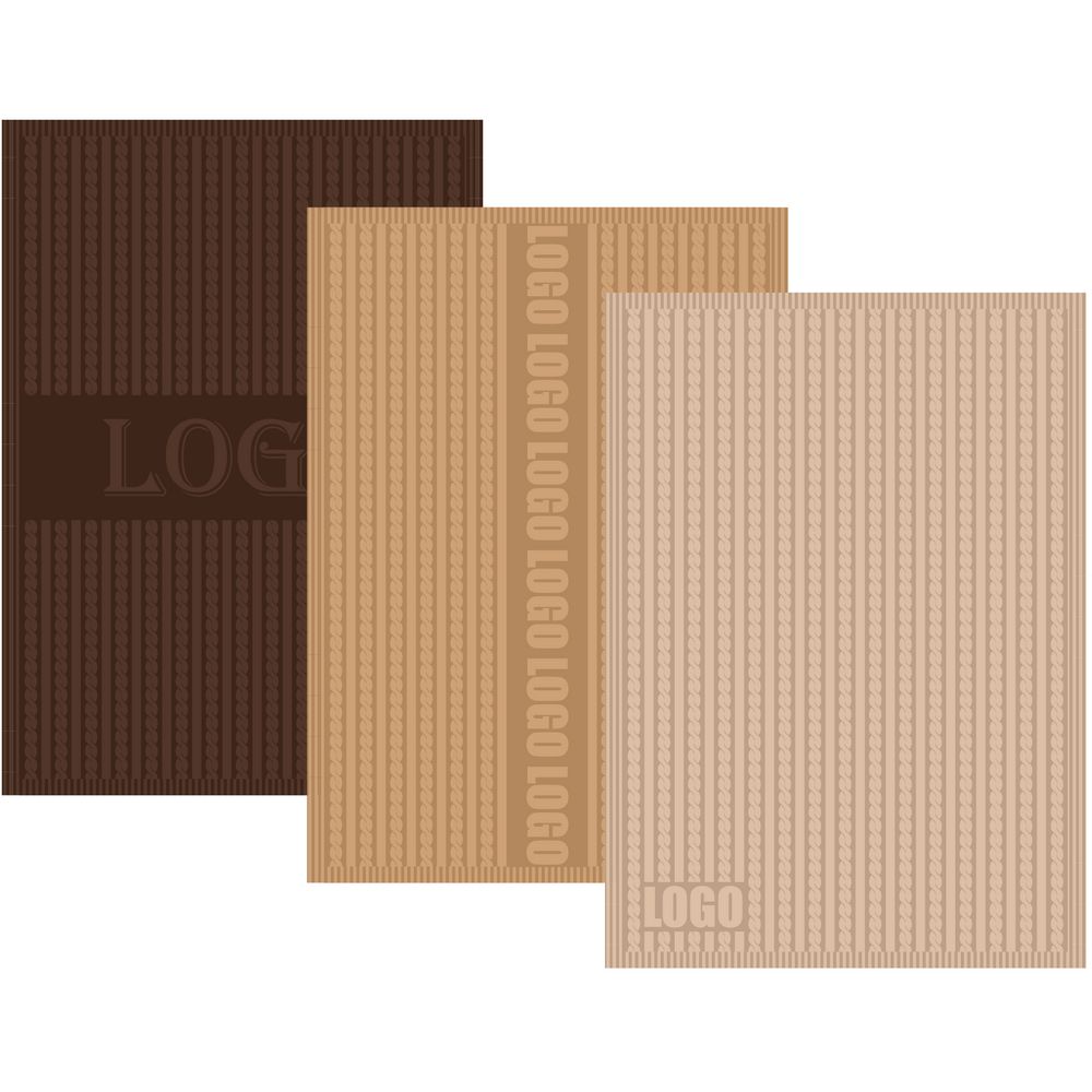 Модель: однотонный плед с фактурной вязкой, которая позволяет сделать его воздушным и объемным. Чередуя различные типы петель на гладком полотне, можно вывязать любую графику — логотип, текст, товарный знак.