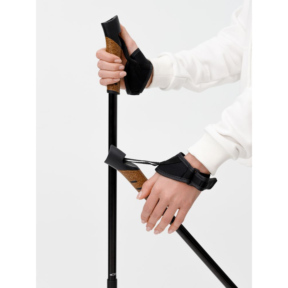 - Заостренный наконечник из стали с комплектом насадок для ходьбы по асфальту («сапожок»), песку, снегу, мягкому грунту («кольцо») или пересеченной местности («упор»)