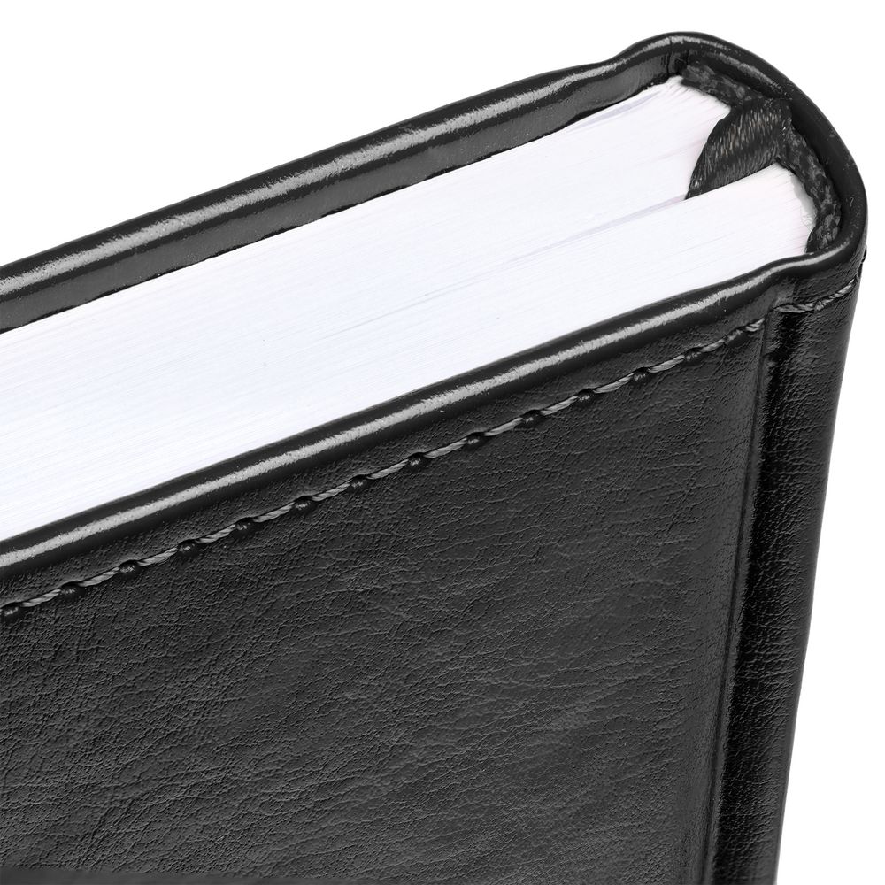 Ежедневник с твердой обложкой без поролона, выполнен из материала Nebraska, черный АА, дополнен ляссе и капталом в цвет обложки.
