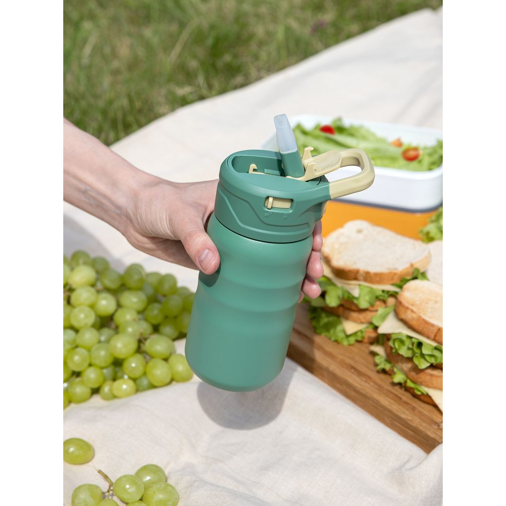 - 2 герметичные крышки в комплекте: с откидным носиком-поильником, с откручивающейся крышкой